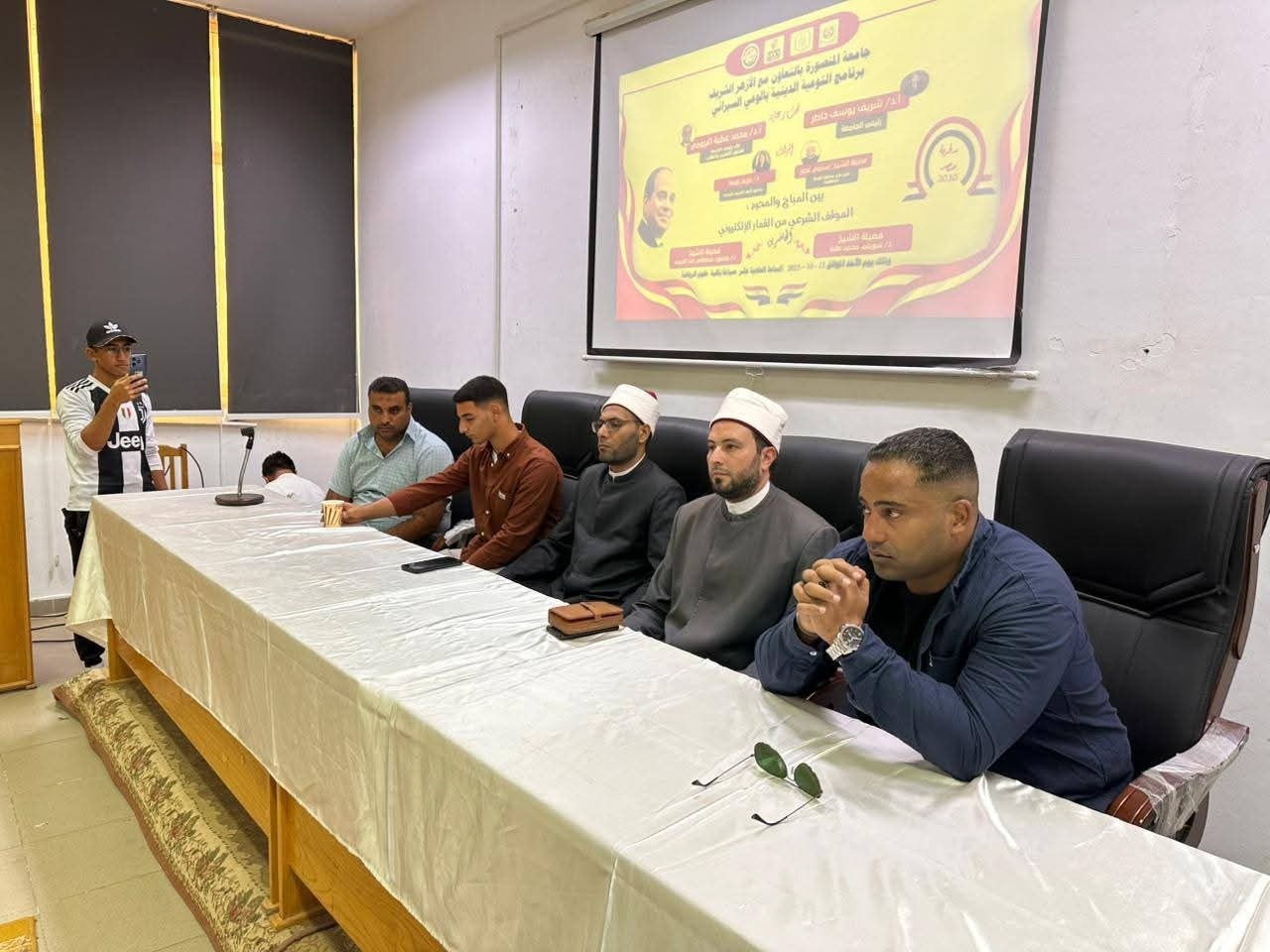 أُقيمت ندوة في كلية الحقوق بحضور الأستاذ الدكتور/ تامر صالح – وكيل الكلية لشئون التعليم والطلاب، الذي أكد على أهمية التعاون المؤسسي لتوعية الشباب بالقضايا الفكرية الحديثة.. المحاضرون: فضيلة الدكتور/ لطفي محمود العراقي وفضيلة الدكتور/ سامح محمد السيد – واعظان عامان بمنطقة وعظ الدقهلية.