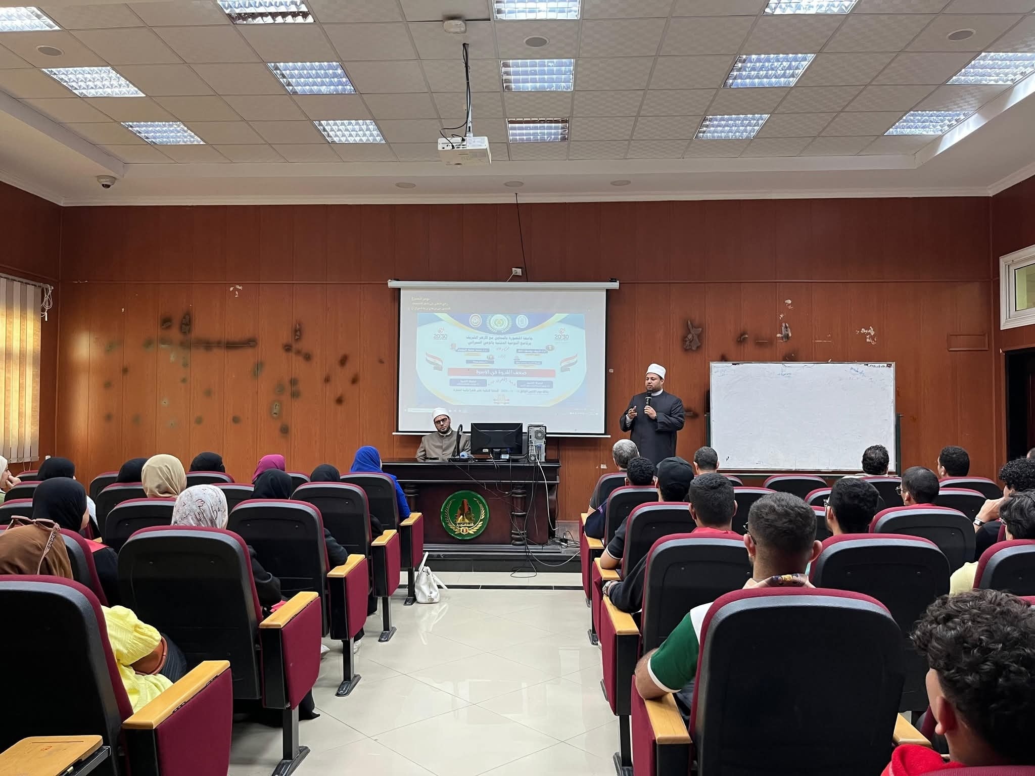 وفي إطار التعاون المستمر بين الجامعة ومنطقة وعظ الدقهلية بالأزهر الشريف، نُظمت عدة ندوات تناولت موضوعات تربوية وأسرية تُعنى ببناء الأسرة السليمة وتعزيز الوعي المجتمعي.. أقيمت بكلية التجارة محاضرة بعنوان "خطورة ضعف القدوة في الأسرة" حاضر فيها فضيلة الدكتور ربيع السبكي وفضيلة الشيخ محمد فتحي ناصف، حيث استعرضا أثر غياب القدوة الصالحة في تشكيل سلوك الأبناء وتكوين وعيهم الفكري والتربوي، مؤكدين أن القدوة العملية تمثل الركيزة الأهم في بناء جيل ملتزم وواعٍ.